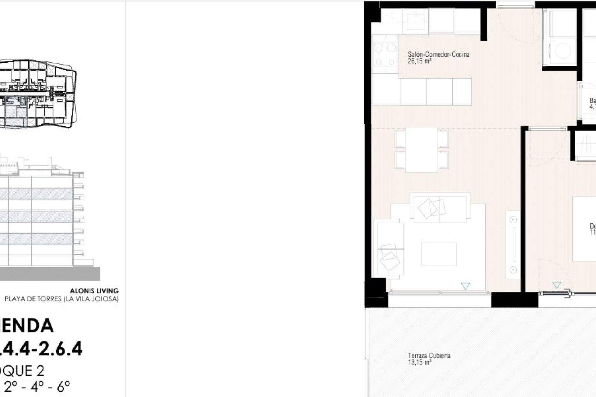In der charmanten Stadt La Vila Joiosa gelegen, bietet dieses Wohnresort eine Vielzahl von Wohnmöglichkeiten, die unterschiedlichen Bedürfnissen und Lebensstilen gerecht werden. Mit insgesamt 71 Einheiten können zukünftige Bewohner zwischen Apartments, Erdgeschosswohnungen und Penthäusern wählen, die jeweils so gestaltet sind, dass sie Komfort und Funktionalität maximieren. Die Nähe zum Meer, nur 400 Meter entfernt, ermöglicht es, die Meeresbrise und spektakuläre Ausblicke zu genießen, was diesen Ort zu einem idealen Rückzugsort für diejenigen macht, die eine ruhige und natürliche Umgebung suchen. Die Vielfalt der Typologien stellt sicher, dass es für jede Familie oder Einzelperson eine passende Option gibt, mit Konfigurationen von einem bis drei Schlafzimmern und einem oder zwei Bädern, je nach Wahl.