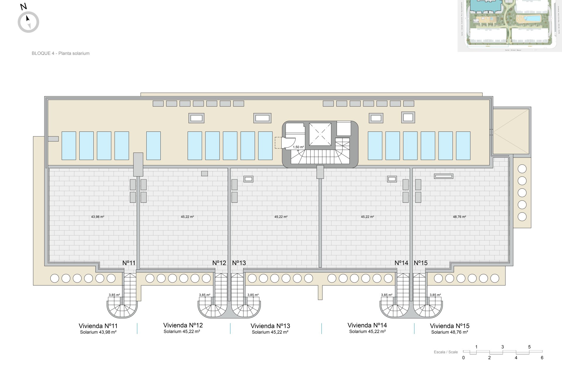 Die Außenbereiche dieser Immobilien sind darauf ausgelegt, das mediterrane Klima optimal zu nutzen. Jede Wohnung verfügt über eine Terrasse, ideal zum Entspannen im Freien oder für Familienessen. Darüber hinaus beinhalten einige Typen einen privaten Garten, der zusätzlichen grünen Raum für Freizeit oder Gartenarbeit bietet. Für diejenigen, die nach Panoramablicken suchen, bieten die Penthäuser ein Solarium, perfekt zum Sonnenbaden oder um die Umgebung zu bewundern. Die Entfernung von nur 2 km zum Meer ermöglicht es, jederzeit die Meeresbrise und Küstenspaziergänge zu genießen.