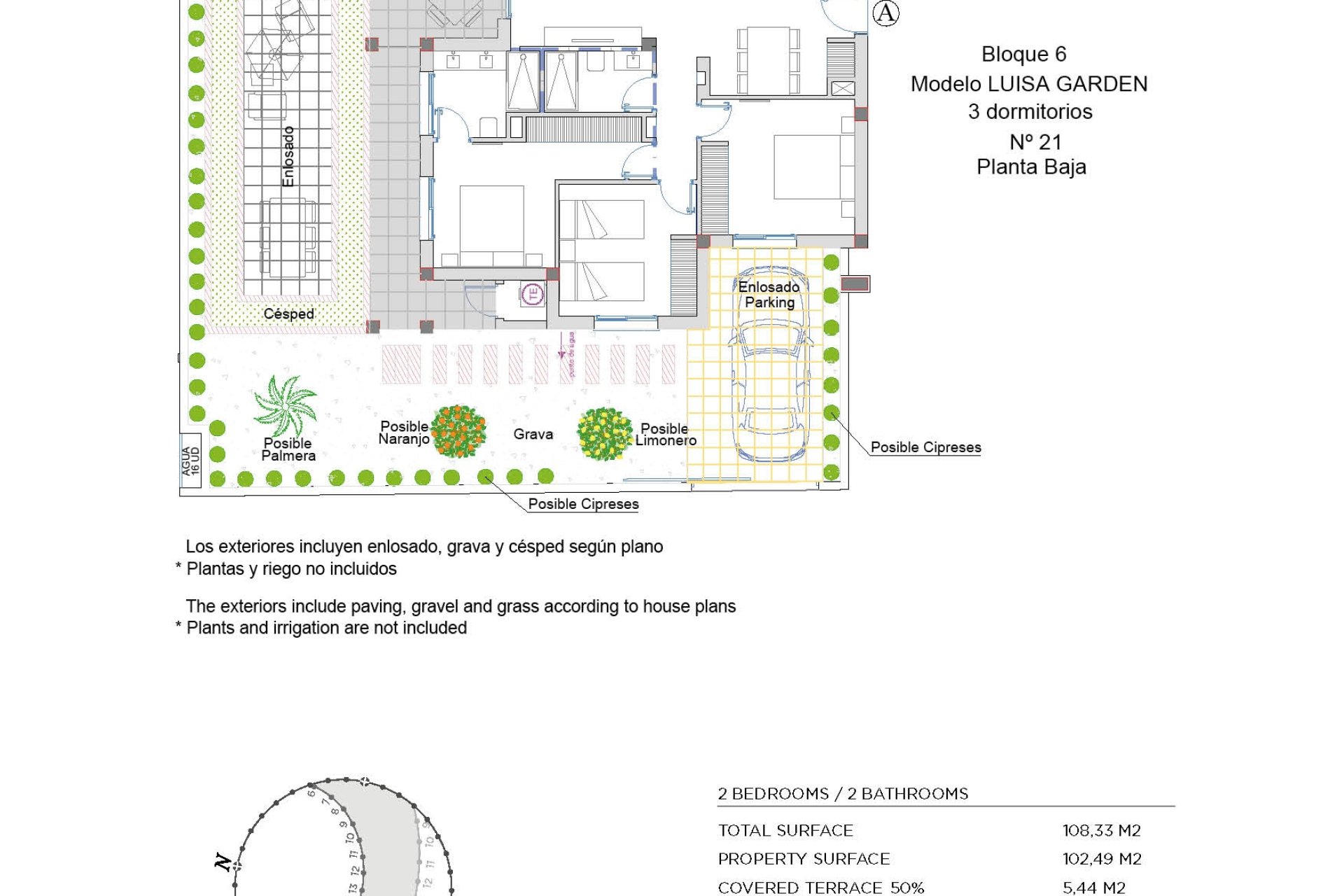 Das Innere der Bungalows ist sorgfältig gestaltet, um Komfort und Stil zu bieten. Mit zwei Schlafzimmern und zwei Bädern ist jeder Raum auf Komfort optimiert. Die Feinsteinzeugböden verleihen einen modernen Touch und sind pflegeleicht. Elektrische Rollläden und Einbauschränke sind Standardmerkmale, die die Funktionalität des Hauses verbessern. Darüber hinaus sorgt die Vorinstallation der Klimaanlage dafür, dass das Raumklima immer angenehm ist. Die Aufteilung umfasst eine Garage, die einen sicheren Platz für das Fahrzeug bietet.