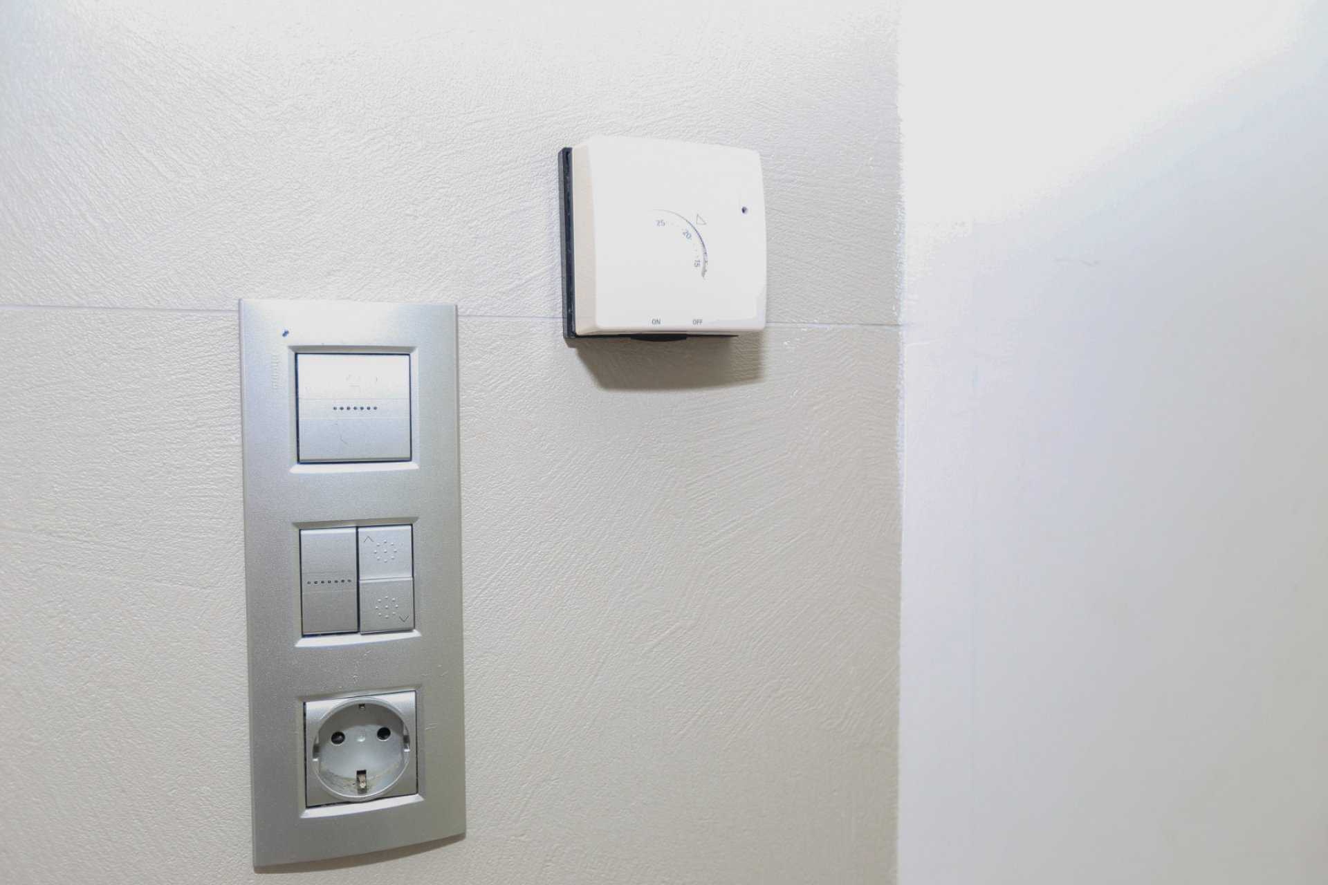 Im Erdgeschoss befinden sich ein voll ausgestattetes Badezimmer (alle Badezimmer verfügen über Fußbodenheizung) sowie ein Schlafzimmer mit Zugang nach draußen. Auf der linken Seite befindet sich das großzügige Wohn- und Esszimmer mit einer modernen, voll ausgestatteten offenen Küche. Alle Fenster verfügen über elektrische Rollläden, mit Ausnahme der großen Fenster im Wohnzimmer.