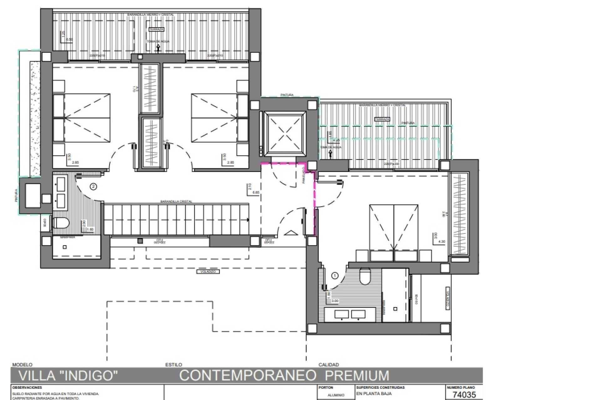 Das Innere der Villen ist so gestaltet, dass es maximalen Komfort und Funktionalität bietet. Mit drei Schlafzimmern und drei Bädern ist jeder Raum auf das Wohlbefinden der Bewohner optimiert. Die Villen sind mit Klimaanlage, Einbauschränken und modernsten Geräten ausgestattet. Die Hausautomation und elektrische Rollläden verleihen einen Hauch von Modernität und Bequemlichkeit, während die Video-Gegensprechanlage zusätzliche Sicherheit bietet.