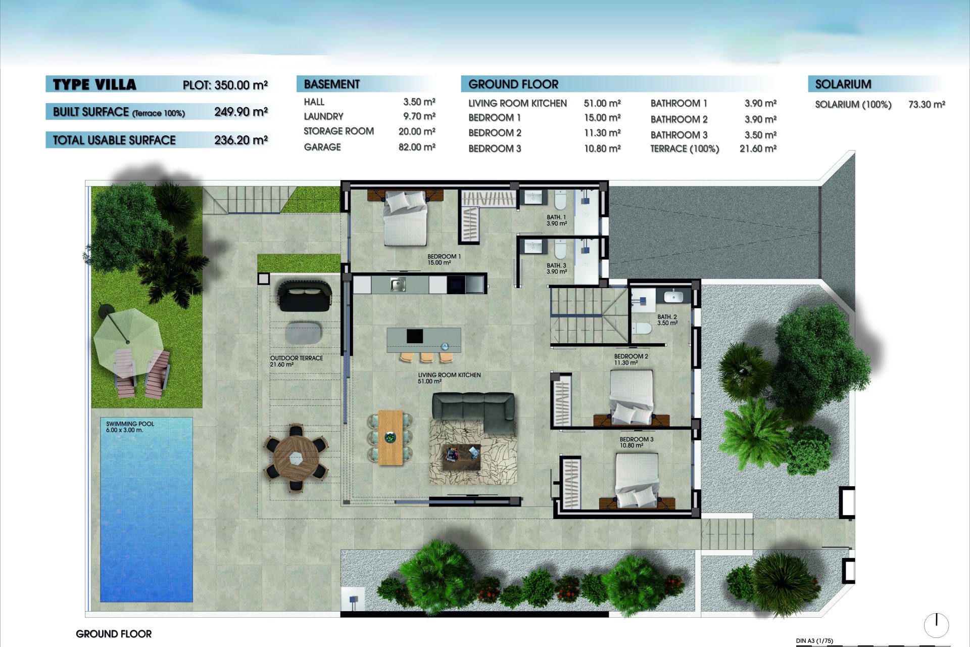 Das Innere dieser freistehenden Häuser ist so gestaltet, dass es maximalen Komfort und Funktionalität bietet. Mit drei Schlafzimmern und drei Bädern ist jede Immobilie ausgestattet, um den Bedürfnissen von Familien oder Paaren gerecht zu werden, die Raum und Privatsphäre suchen. Einbauschränke optimieren den Stauraum, während elektrische Rollläden einen modernen und komfortablen Touch hinzufügen. Der Boden aus Feinsteinzeug bietet eine elegante und langlebige Oberfläche, ideal für den täglichen Gebrauch. Die Vorinstallation einer Klimaanlage sorgt dafür, dass das Raumklima immer angenehm ist und sich an persönliche Vorlieben anpasst. Darüber hinaus verfügt jedes Haus über eine Garage, die einen sicheren Platz für das Parken und zusätzlichen Stauraum bietet.