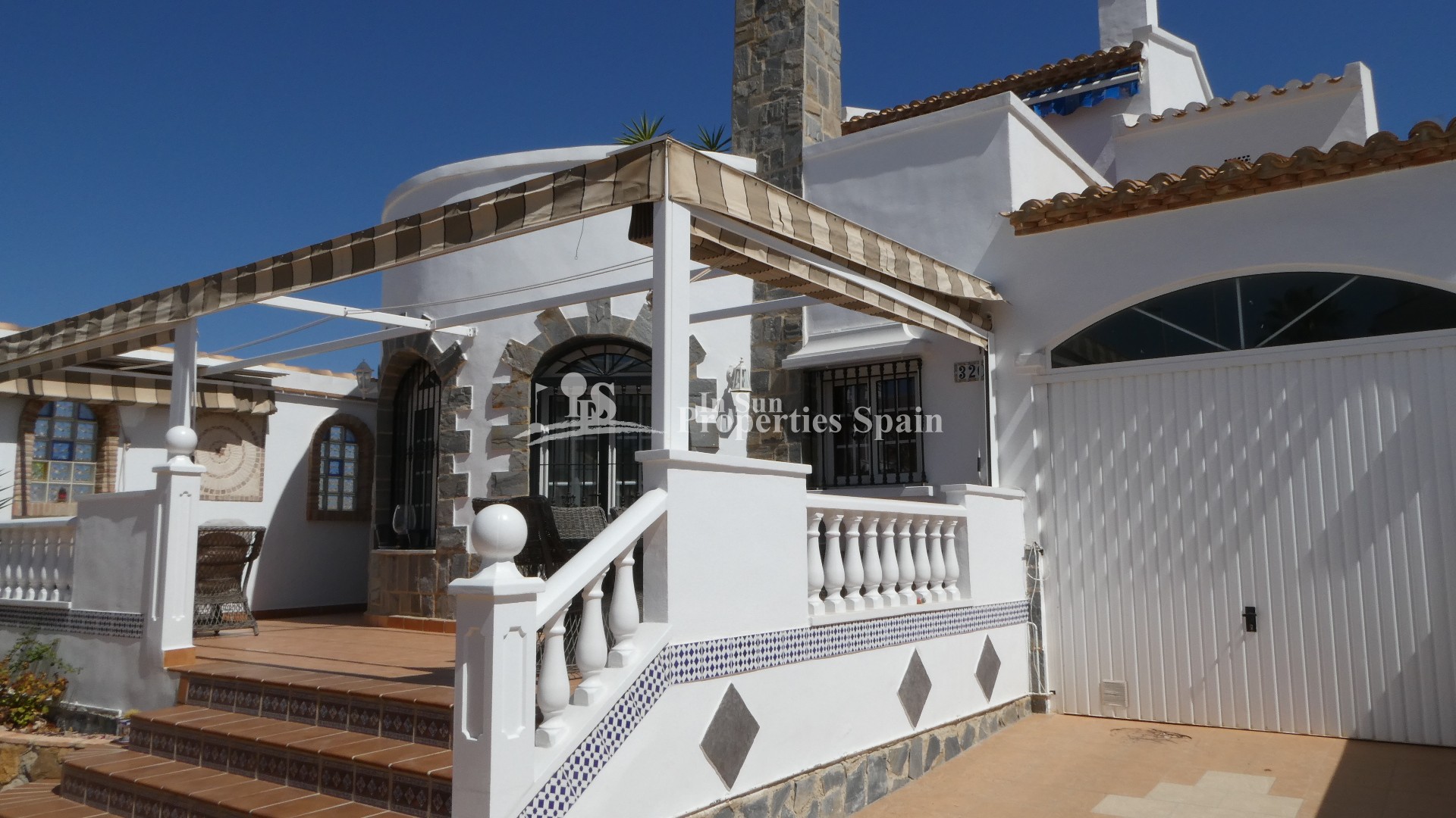 Sehr schöne und gepflegte 135 m² große Villa auf einem Eckgrundstück in der beliebten Gegend Los Dolses Villamartin. Das nach Südwesten ausgerichtete Haus besteht aus einer Eingangshalle, einem Wohn-/Essbereich mit offener Küche, 4 Schlafzimmern, 3 Badezimmern, von denen 2 en-suite sind und 1 Badezimmer über Fußbodenheizung verfügt, einem Hauswirtschaftsraum, einer Garage und einer sonnigen 31 m² großen Sonnenterrasse mit Meerblick. Das Haus wurde im Frühjahr 2025 außen gestrichen. Wasserreinigungssystem (Trinkwasser) im gesamten Haus. Neue LED-Spots im Wohnzimmer. 5 Klimaanlagen, Gaskamin, gepflasterter, pflegeleichter Garten mit Blumenbeeten, sehr schöner Gemeinschaftsbereich mit großem Pool. Die Immobilie wird komplett möbliert mit hochwertigen Möbeln verkauft, ein Auto, Hyundai Sonata 3,0L V6, Modell 2007, 110.000 km, ist im Verkaufspreis enthalten.