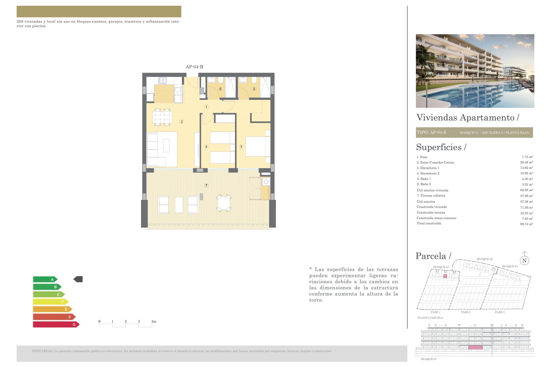 Les espaces communs de la résidence sont conçus pour le plaisir de toute la famille. Les jardins communautaires offrent un espace vert pour se détendre ou se promener, tandis que la piscine communautaire est parfaite pour se rafraîchir pendant les mois les plus chauds. Les plus petits pourront profiter de l'aire de jeux, conçue pour leur divertissement et leur sécurité. De plus, le complexe dispose d'un garage communautaire et de zones de stationnement, assurant que tous les résidents aient accès à un espace pour leur véhicule.