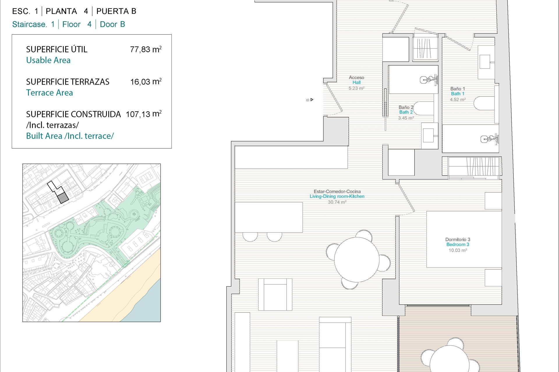 L'intérieur des propriétés de cette résidence à La Vila Joiosa est conçu pour offrir un espace accueillant et fonctionnel. Avec des options de 1, 2 et 3 chambres, et jusqu'à 3 salles de bains, chaque logement s'adapte à différents besoins familiaux. Les sols en stratifié et en grès cérame offrent une base élégante et résistante, tandis que l'intégration de la domotique permet un contrôle total de l'ambiance de la maison. Les cuisines sont équipées d'appareils modernes, facilitant la vie quotidienne et permettant aux résidents de profiter d'un style de vie contemporain. Les placards intégrés offrent des solutions de rangement efficaces, gardant les espaces organisés et sans encombrement. Chaque détail a été soigneusement pensé pour garantir que les intérieurs soient à la fois pratiques et esthétiquement agréables.
