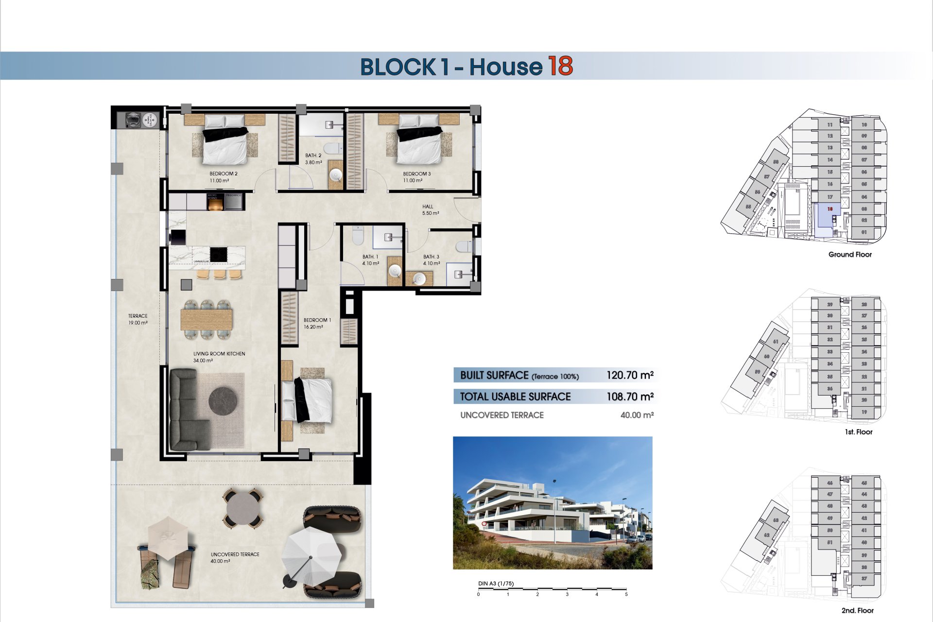 Les extérieurs de ces logements ont été conçus pour offrir un espace de détente et de plaisir en plein air. Chaque propriété dispose d'une terrasse privée, idéale pour profiter du climat méditerranéen. De plus, les rez-de-chaussée disposent de jardins privés, offrant un espace vert personnel pour les amoureux de la nature. Les penthouses, quant à eux, incluent un solarium, parfait pour profiter du soleil en toute intimité. La proximité de la mer, à seulement 1 kilomètre, permet de profiter de vues spectaculaires et de la brise marine.