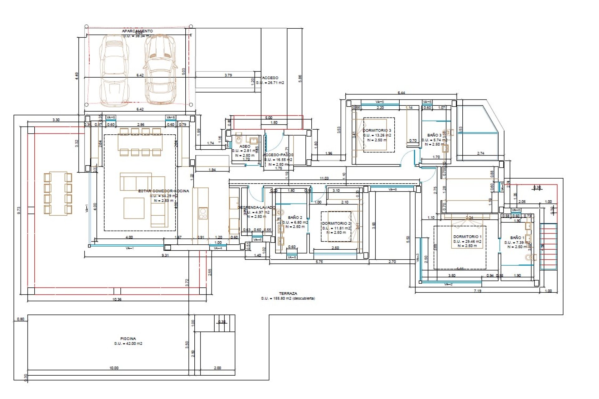 L'intérieur de la villa est conçu avec un accent sur le confort et la fonctionnalité. Avec un total de 4 chambres et 4 salles de bains, la disposition est idéale pour les familles ou pour recevoir des invités. Les sols en microciment apportent une touche moderne et élégante aux espaces. La villa est équipée de la climatisation et du chauffage par le sol, assurant une atmosphère confortable toute l'année. Les volets électriques et les appareils de haute qualité ajoutent un niveau supplémentaire de confort. Les placards intégrés offrent un vaste espace de rangement, maintenant l'ordre et l'organisation dans la maison.