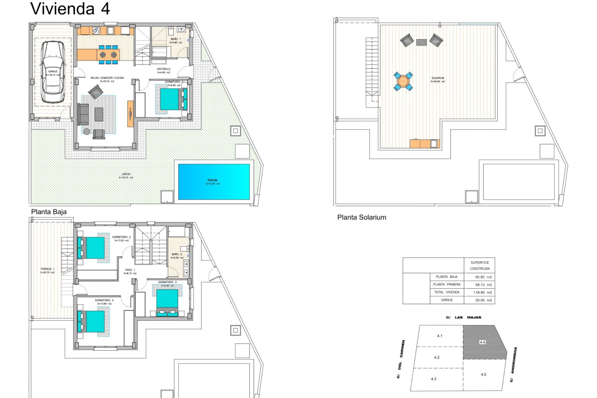 Les maisons disposent d'un design extérieur qui allie élégance et fonctionnalité. Chaque propriété possède un jardin privé, idéal pour profiter de l'extérieur et organiser des réunions familiales ou entre amis. De plus, les terrasses offrent un espace supplémentaire pour se détendre et profiter du climat méditerranéen. Le solarium est un endroit parfait pour bronzer en toute intimité, tandis que la piscine privée ajoute une touche de luxe, permettant de se rafraîchir lors des journées les plus chaudes. L'accès au garage privé assure confort et sécurité pour les véhicules des résidents.