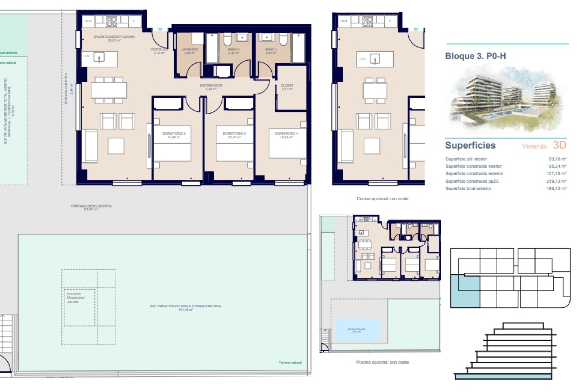 L'intérieur des logements de cette résidence à La Vila Joiosa est conçu pour offrir un maximum de confort et de fonctionnalité. Les appartements, rez-de-chaussée et penthouses sont équipés de sols en grès cérame, qui sont non seulement élégants mais aussi faciles à entretenir. Le système de chauffage par le sol assure une ambiance chaleureuse et accueillante pendant les mois les plus froids. Les cuisines sont entièrement équipées d'appareils modernes, facilitant la vie quotidienne. Les placards intégrés offrent un vaste espace de rangement, gardant les espaces ordonnés et sans encombrement. Le vidéophone ajoute un niveau supplémentaire de sécurité et de confort. La distribution des logements, avec des options de 2, 3 ou 4 chambres et 2 ou 3 salles de bains, permet une personnalisation selon les besoins de chaque famille. Les terrasses et solariums, le cas échéant, étendent l'espace de vie vers l'extérieur, créant un flux continu entre l'intérieur et l'extérieur.