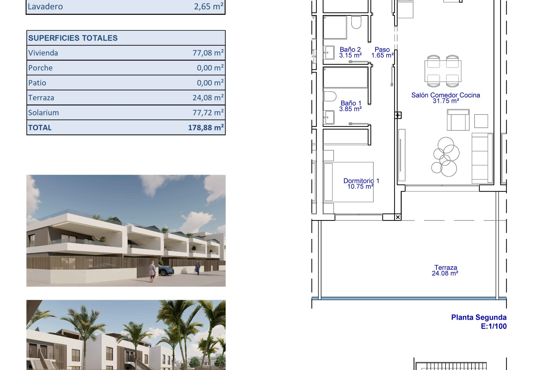 Les extérieurs de ces propriétés sont conçus pour maximiser le plaisir du climat méditerranéen. Chaque logement dispose d'une terrasse privée, parfaite pour se détendre en plein air ou profiter de repas en plein air. Les rez-de-chaussée offrent l'avantage supplémentaire d'un jardin privé, fournissant un espace vert personnel pour cultiver des plantes ou simplement se reposer. Les penthouses, quant à eux, incluent un solarium, idéal pour bronzer en toute intimité. L'option d'un garage assure que le stationnement ne soit pas un problème, permettant aux résidents de profiter du confort d'avoir leur véhicule toujours à portée de main.