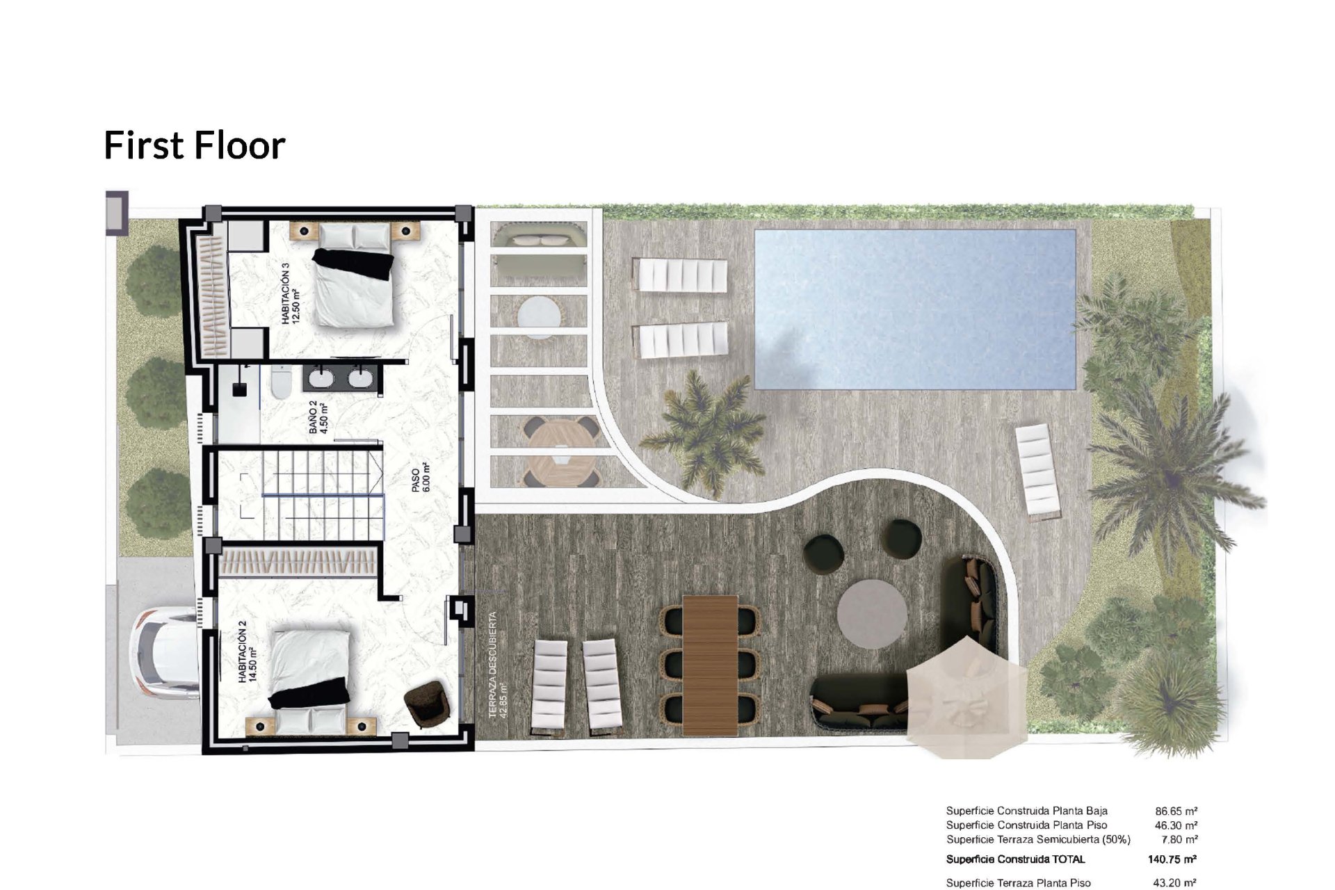 De buitenruimtes van deze rijtjeshuizen in Heredades zijn ontworpen om optimaal te genieten van het mediterrane klimaat. Elke woning beschikt over een privétuin, perfect om een persoonlijke oase van rust te creëren of om te genieten van buitenactiviteiten met het gezin. De aanwezigheid van een pergola voegt een vleugje elegantie en functionaliteit toe, biedt schaduw en een ideale ruimte om te ontspannen of gasten te ontvangen. Bovendien beschikt elk rijtjeshuis over een privézwembad, dat een verfrissende plek biedt om de zomerse hitte te bestrijden en te genieten van vrije tijd in het comfort van uw eigen huis. Het terras, een ander aantrekkelijk buitenkenmerk, biedt een veelzijdige ruimte om te genieten van het uitzicht en de buitenlucht.