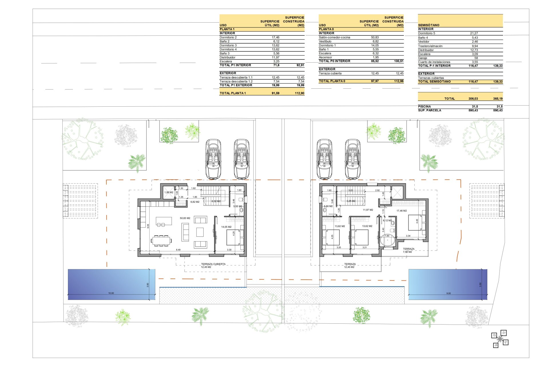 Het interieur van de villa's is zorgvuldig ontworpen om maximaal comfort en functionaliteit te bieden. Met vijf slaapkamers en vier badkamers zijn deze eigendommen perfect voor gezinnen of gasten. De indeling omvat een garage, die ruimte biedt voor parkeren en opslag. Hoogwaardige afwerkingen omvatten porseleinen vloertegels, die duurzaamheid en een moderne stijl bieden. De villa's zijn uitgerust met de nieuwste apparaten, domotica voor efficiënte woningcontrole, airconditioning om het hele jaar door een aangename temperatuur te behouden, en vloerverwarming voor de koudere maanden. Ingebouwde kasten bieden voldoende opbergruimte en houden het interieurontwerp schoon en opgeruimd.