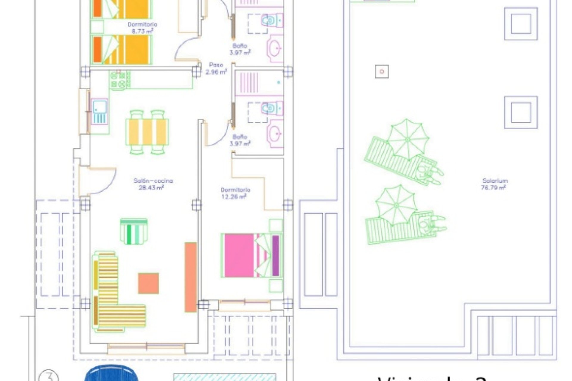 The exteriors of these homes are a true oasis of tranquility. Each villa features a private garden, perfect for enjoying outdoor moments in a safe and welcoming environment. The terrace is an ideal space to relax, sunbathe, or enjoy outdoor meals with friends and family. Additionally, each property has a solarium, offering extra space for relaxation and enjoyment of the Mediterranean climate. The presence of a private pool in each home adds a touch of luxury, allowing you to cool off on hot days without leaving home.