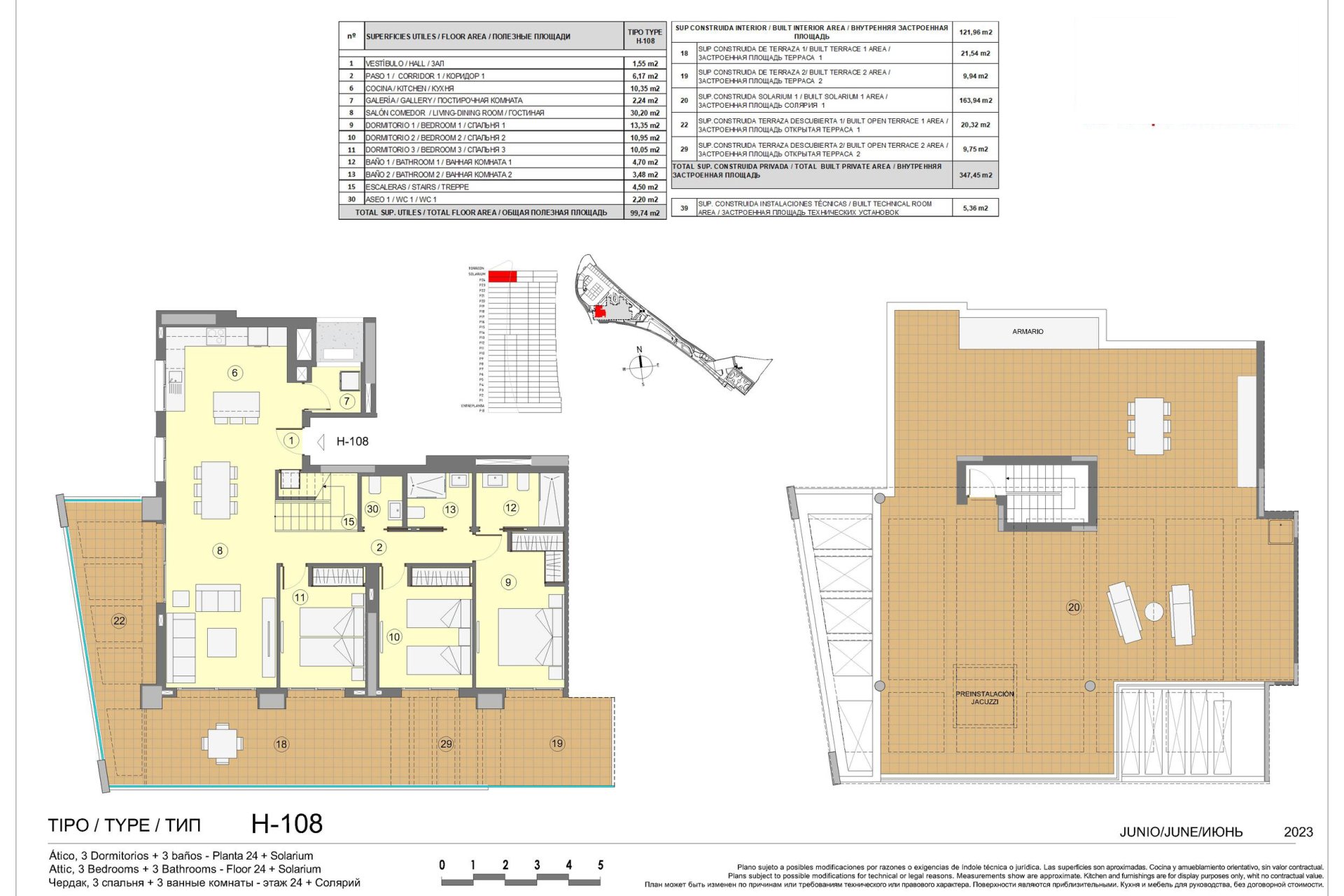 The exteriors of these properties are designed to offer a space for relaxation and outdoor enjoyment. Each home features private terraces, ideal for contemplating the sea views and enjoying the Mediterranean climate. Additionally, the penthouses have solariums, providing extra space for leisure. The properties are equipped with pergolas that offer shade and style, and some include a private jacuzzi for an added touch of luxury. Proximity to the sea, just 1 km away, allows for enjoying the sea breeze and coastal walks at any time.