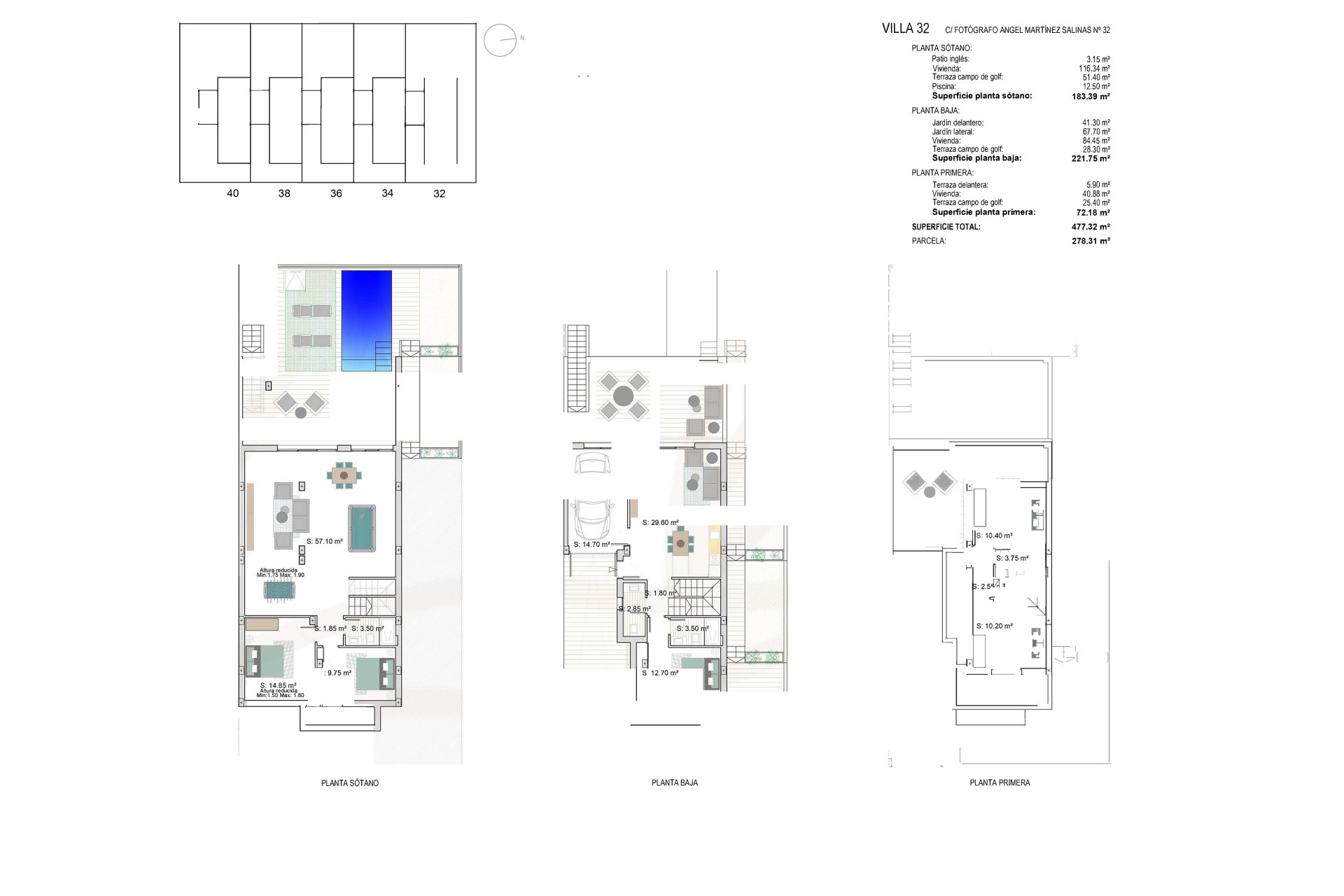 The exteriors of these townhouses in Los Alcázares are designed to maximize enjoyment of the Mediterranean climate. Each property features a private garden, ideal for creating a personal green space to relax or enjoy outdoor activities. Additionally, they have a terrace that becomes the perfect place to enjoy outdoor meals or simply relax at the end of the day. For those looking to cool off during the warm summer days, each townhouse includes a private pool, providing a personal oasis of tranquility and fun. The exterior design is complemented by the inclusion of electric shutters, which add not only convenience but also a touch of modernity and security.