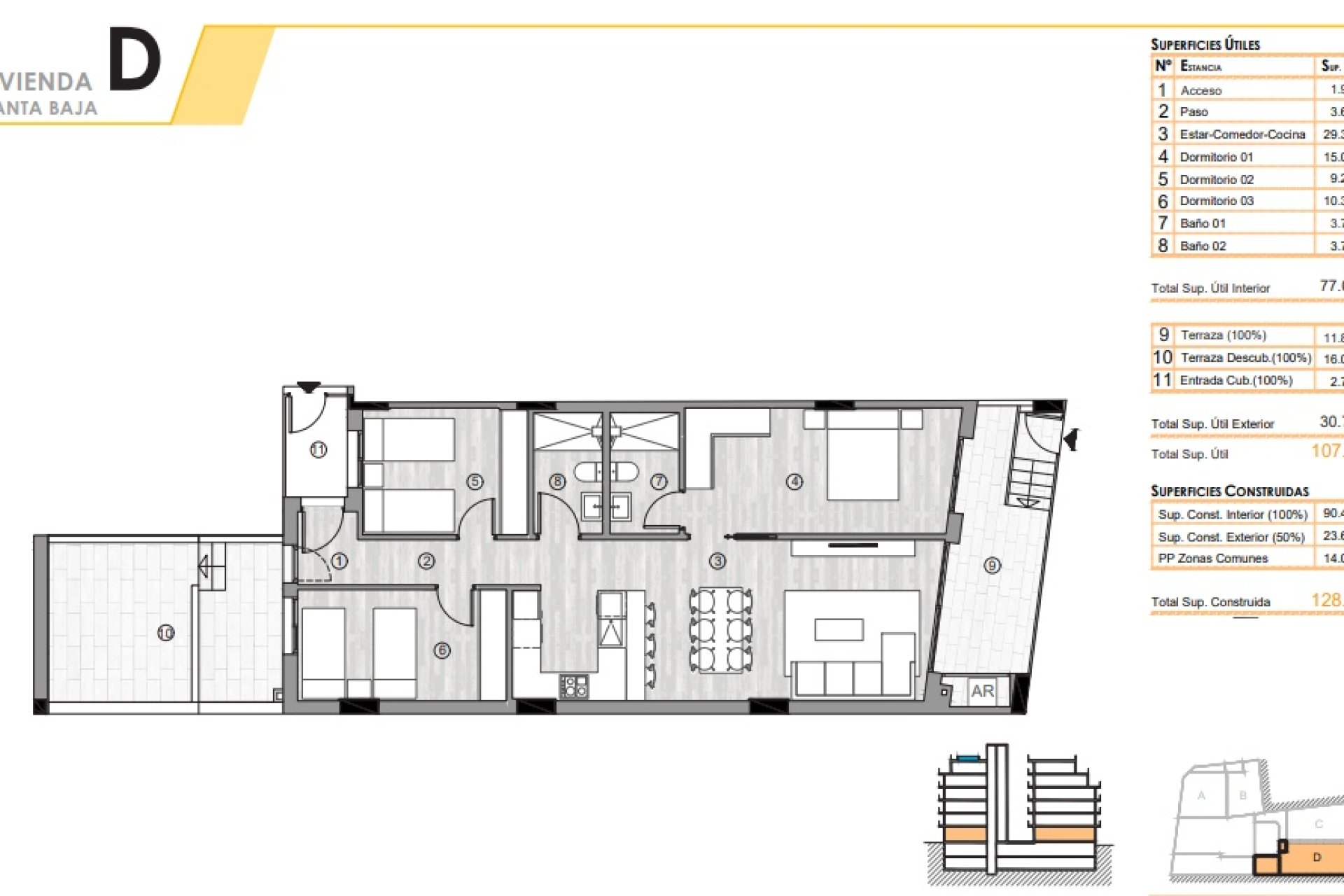 Inside, the penthouses stand out for their modern and functional design. Porcelain tile floors add a touch of elegance and are easy to maintain. The layout includes options for 2 or 3 bedrooms, catering to different family needs, and 2 bathrooms that ensure the comfort of all residents. Built-in wardrobes offer efficient storage space, while the inclusion of appliances in the kitchen facilitates daily life. The option of an optional garage adds a personal touch according to each buyer's preferences.