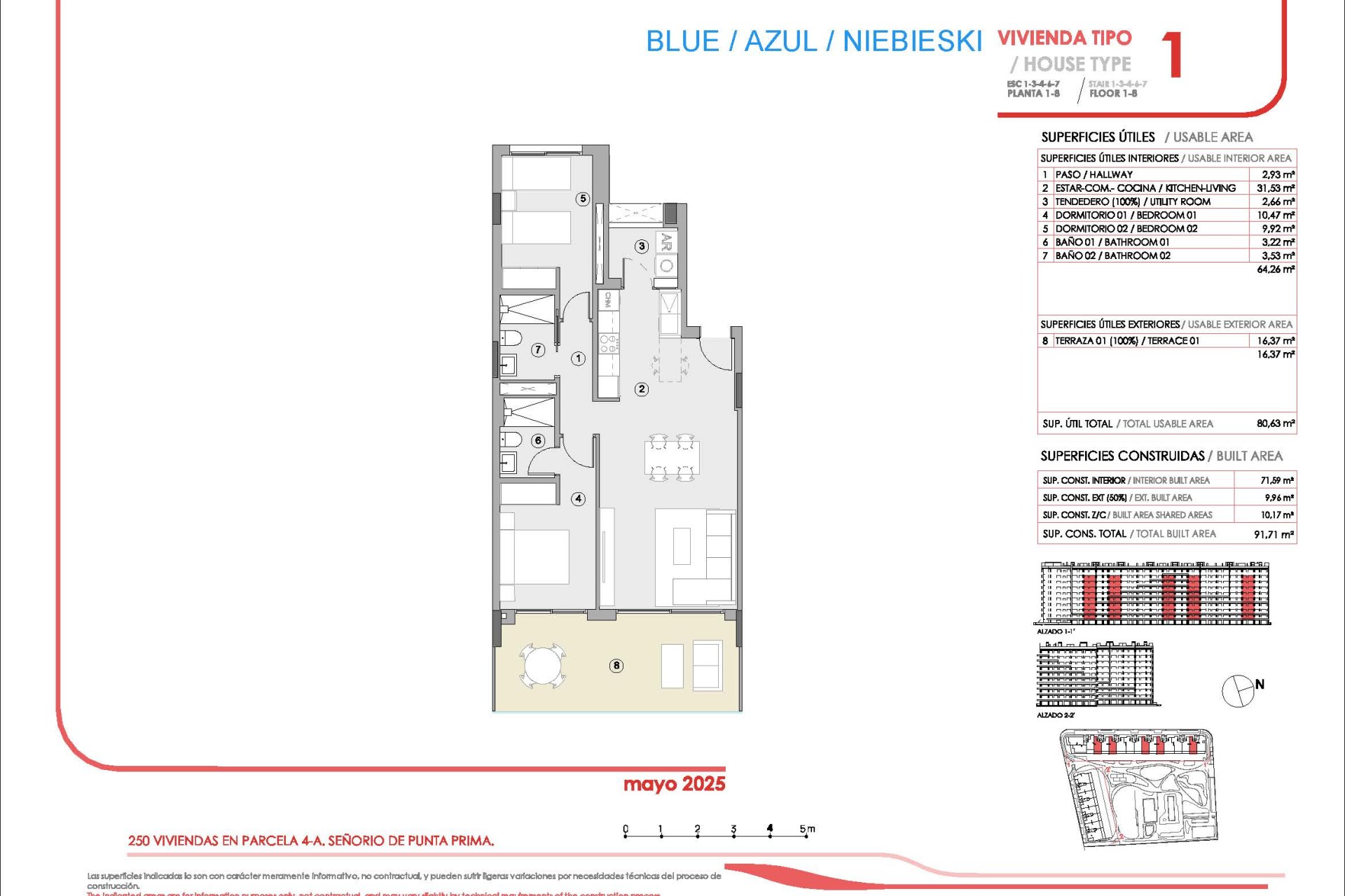 The common areas of this residential complex in Torrevieja are designed to offer a wide range of services and activities for all residents. The complex features a communal pool, ideal for cooling off during hot days, and a communal jacuzzi for relaxation moments. Sports enthusiasts can enjoy a paddle court and a communal gym, allowing for an active lifestyle without leaving the complex. The landscaped areas offer a green and tranquil environment, perfect for walking or enjoying nature. Additionally, the complex includes a communal solarium, a playground for the little ones, and a communal parking area that ensures convenience and security for residents' vehicles.