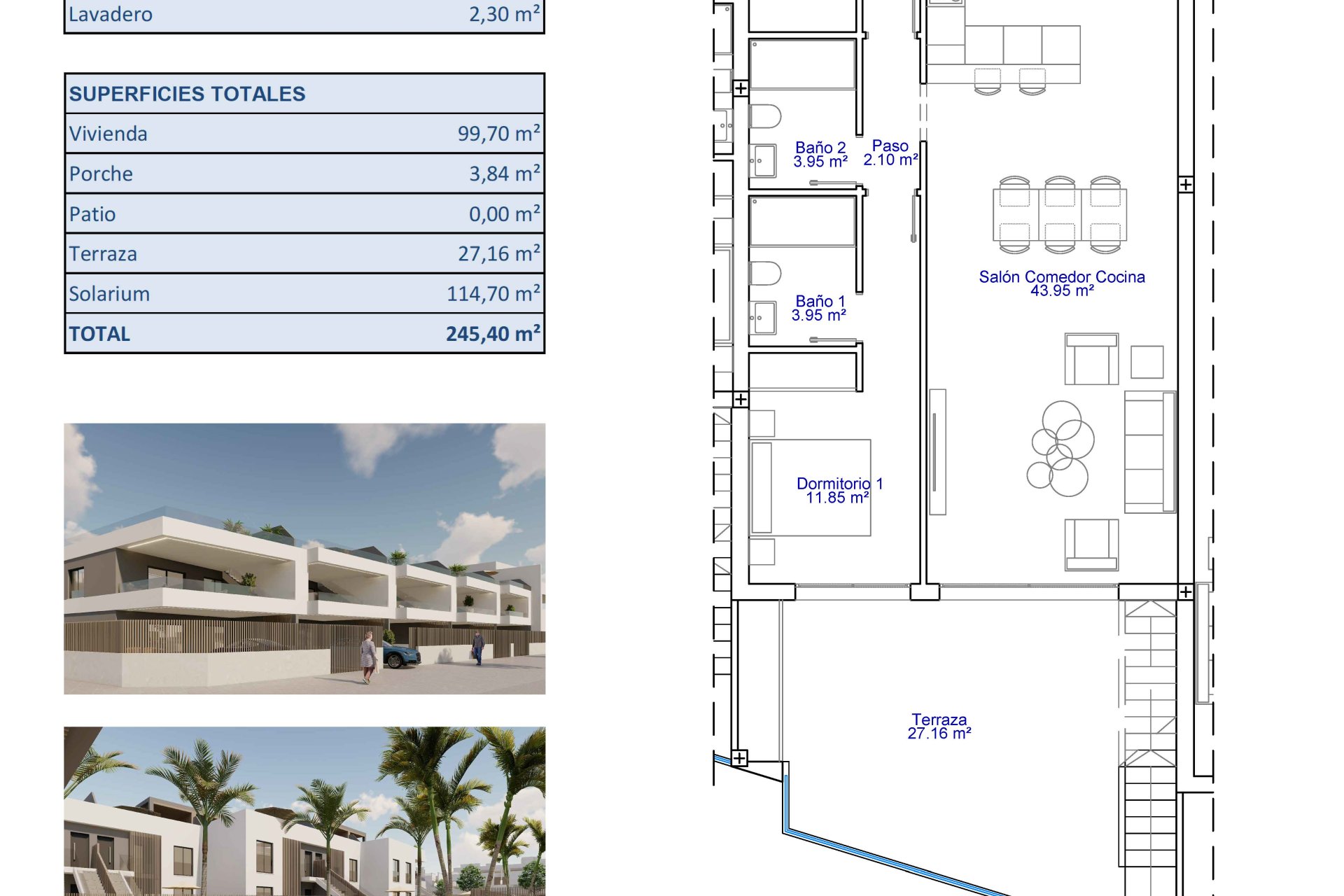 Located in the charming town of Pilar de la Horadada, this residential complex offers an exclusive selection of 10 bungalows. Designed for those seeking a comfortable and modern lifestyle, the bungalows are available in two and three-bedroom configurations, all with two bathrooms. The location is ideal for those who wish to enjoy tranquility without sacrificing proximity to the sea, which is just 3 km away. Additionally, the nearest airport is 45 km away, facilitating access for frequent travelers.
