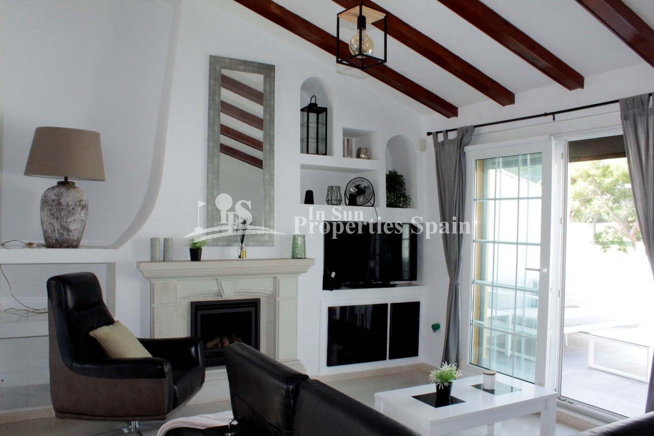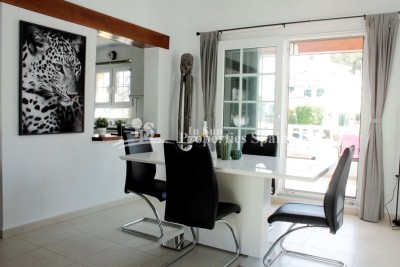 The 132m2 detached fully furnished villa is east, south, west facing guaranteeing sun all day long and has 3 bedrooms, 3 bathrooms, separate kitchen, large spacious lounge-dining area with vaulted ceiling, fireplace and storage room.