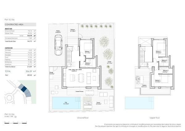Each villa is thoughtfully designed across two levels with a total built area of 140 m². The layout includes: