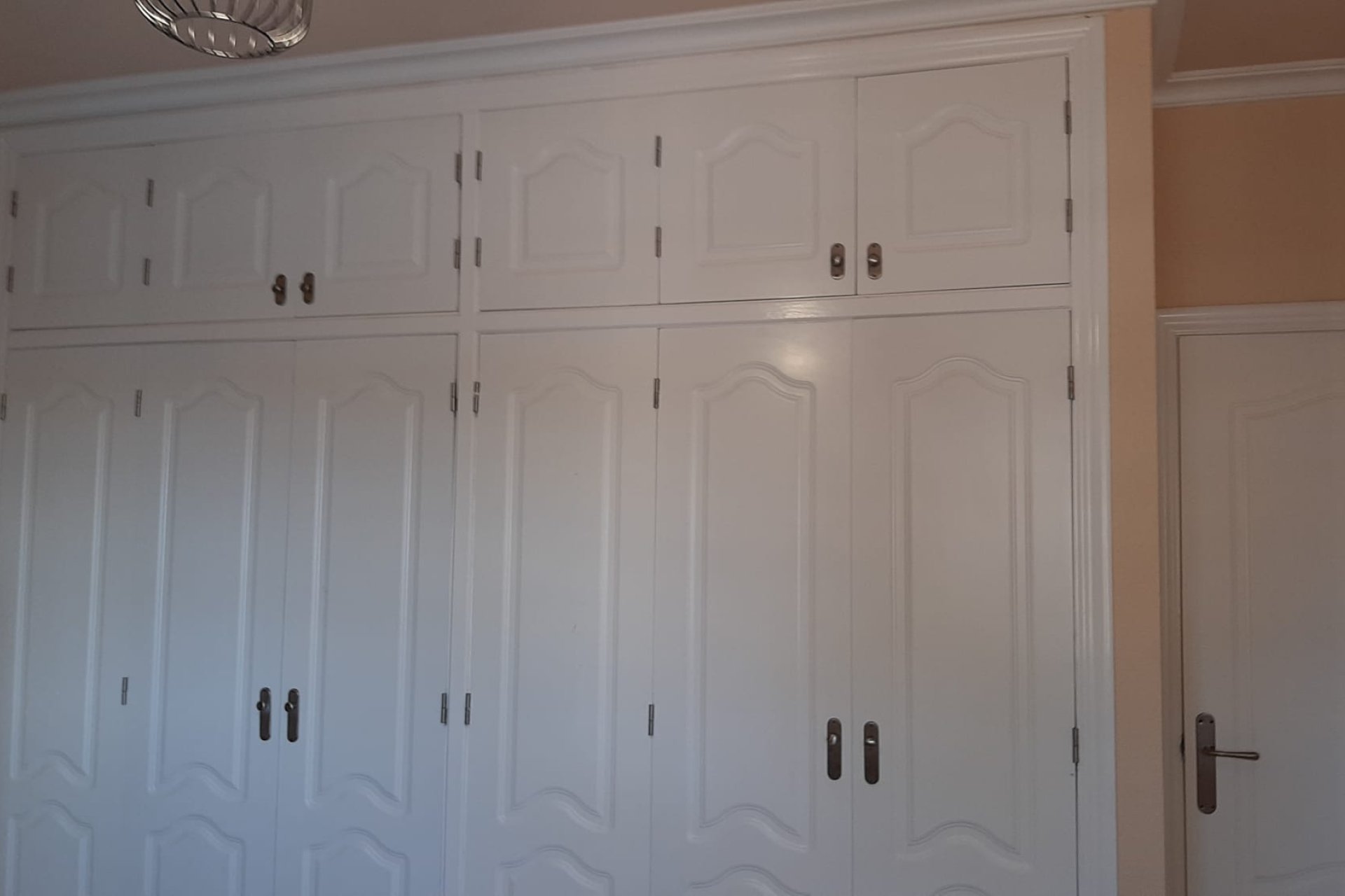 Inomhus är radhuset designat för att erbjuda maximal komfort och funktionalitet. Keramiska golv ger en modern känsla och är lätta att underhålla. Fastigheten är fullt möblerad, vilket underlättar flytten och gör det möjligt att njuta av utrymmet från första dagen. Köket är utrustat med vitvaror, vilket gör matlagningen enkel och trevlig. Inbyggda garderober i sovrummen erbjuder gott om förvaringsutrymme, vilket håller hemmet organiserat och prydligt.