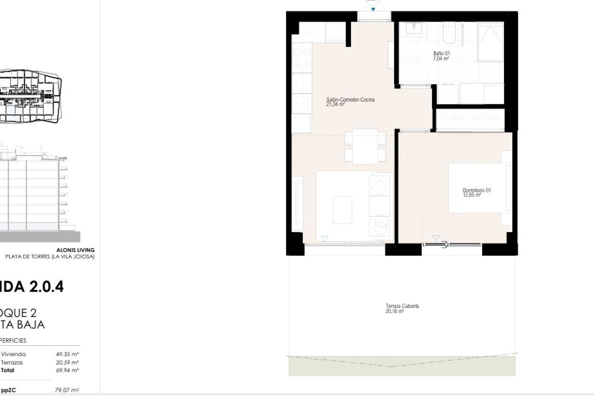Beläget i den charmiga staden La Vila Joiosa erbjuder detta bostadsområde en mängd olika boendealternativ som passar olika behov och livsstilar. Med totalt 71 enheter kan framtida boende välja mellan lägenheter, bottenvåning och takvåningar, alla designade för att maximera komfort och funktionalitet. Närheten till havet, bara 400 meter bort, gör det möjligt att njuta av havsbrisen och spektakulära vyer, vilket gör detta till en idealisk tillflyktsort för dem som söker en lugn och naturlig miljö. Mångfalden av typologier säkerställer att det finns ett lämpligt alternativ för varje familj eller individ, med konfigurationer som varierar från ett till tre sovrum och ett eller två badrum, beroende på val.
