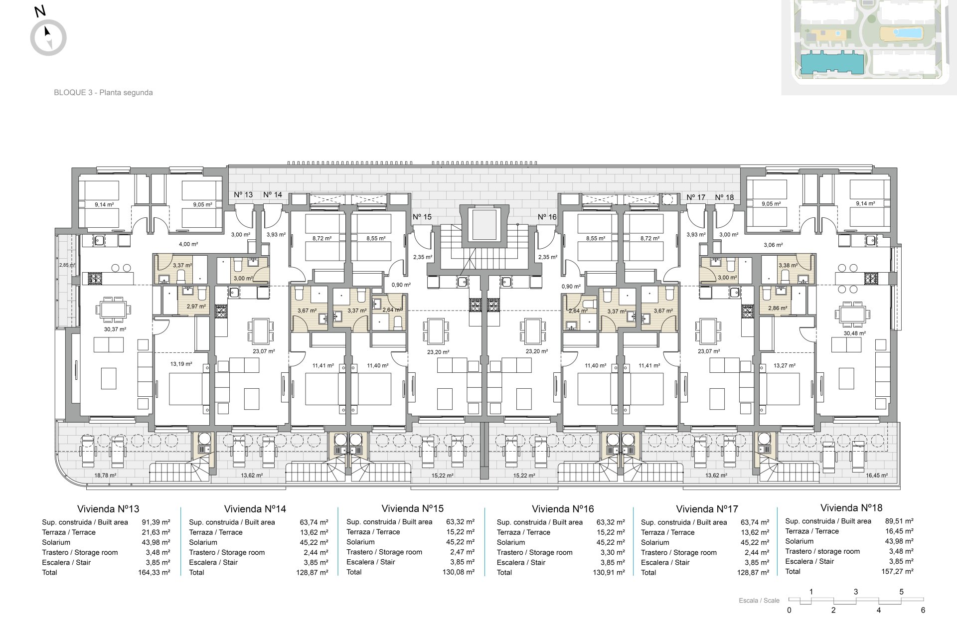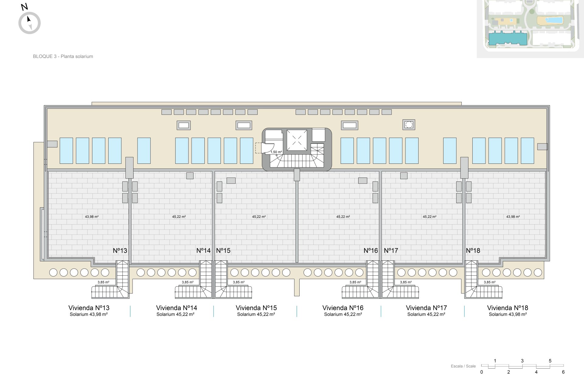 Exteriörerna av dessa fastigheter är utformade för att maximera njutningen av Medelhavsklimatet. Varje bostad har en terrass, idealisk för att koppla av utomhus eller njuta av måltider med familjen. Dessutom inkluderar vissa typer en privat trädgård, vilket ger ett extra grönt utrymme för fritid eller trädgårdsarbete. För dem som söker panoramautsikt erbjuder takvåningarna ett solarium, perfekt för solbad eller för att beundra omgivningen. Avståndet på bara 2 km till havet gör det möjligt att njuta av havsbrisen och kustpromenader när som helst.