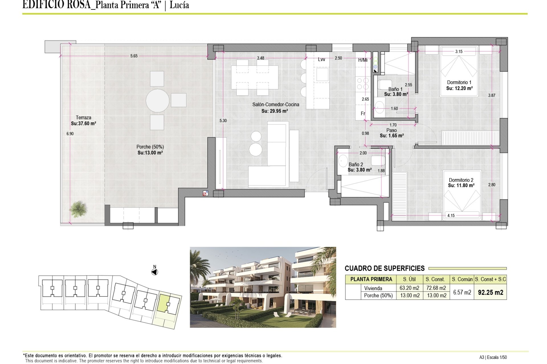 Beläget i det exklusiva området Los Guardianes erbjuder detta bostadsområde ett urval av 14 fastigheter som inkluderar lägenheter, marklägenheter, låga bungalows och takvåningar. Designat för att tillgodose behoven hos dem som söker ett modernt och funktionellt hem, är varje bostad utrustad med vitvaror av hög kvalitet, inbyggda garderober och förinstallation av luftkonditionering. Platsen är idealisk för dem som vill njuta av en lugn miljö utan att ge avkall på närheten till tjänster och förbindelser, eftersom flygplatsen ligger bara 41 km bort. Fastigheterna är designade för att erbjuda maximal komfort och funktionalitet, med alternativ på 2 eller 3 sovrum och 2 badrum, anpassade till olika livsstilar och familjebehov.