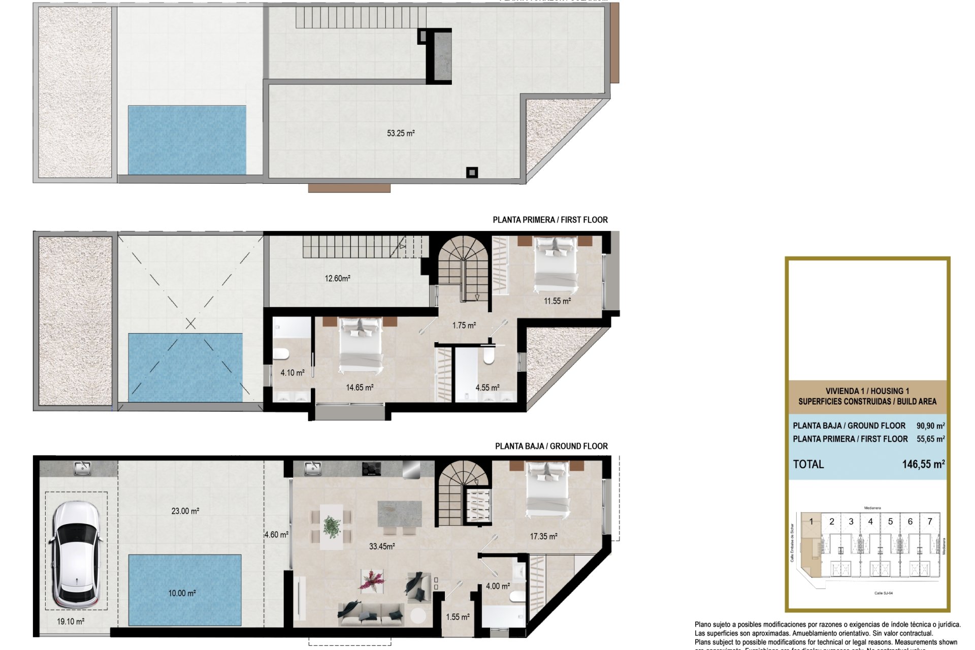 Beläget i den charmiga staden San Javier erbjuder detta bostadskomplex ett exklusivt urval av radhus. Varje bostad är designad för att ge maximal komfort och funktionalitet, idealisk för dem som söker ett hem på en privilegierad plats. Närheten till flygplatsen, endast 35 km bort, tillför ett betydande värde och underlättar resor för dem som reser ofta. Radhusens typologi säkerställer en unik boendeupplevelse, som kombinerar avskildhet och gemenskap i en inbjudande miljö.