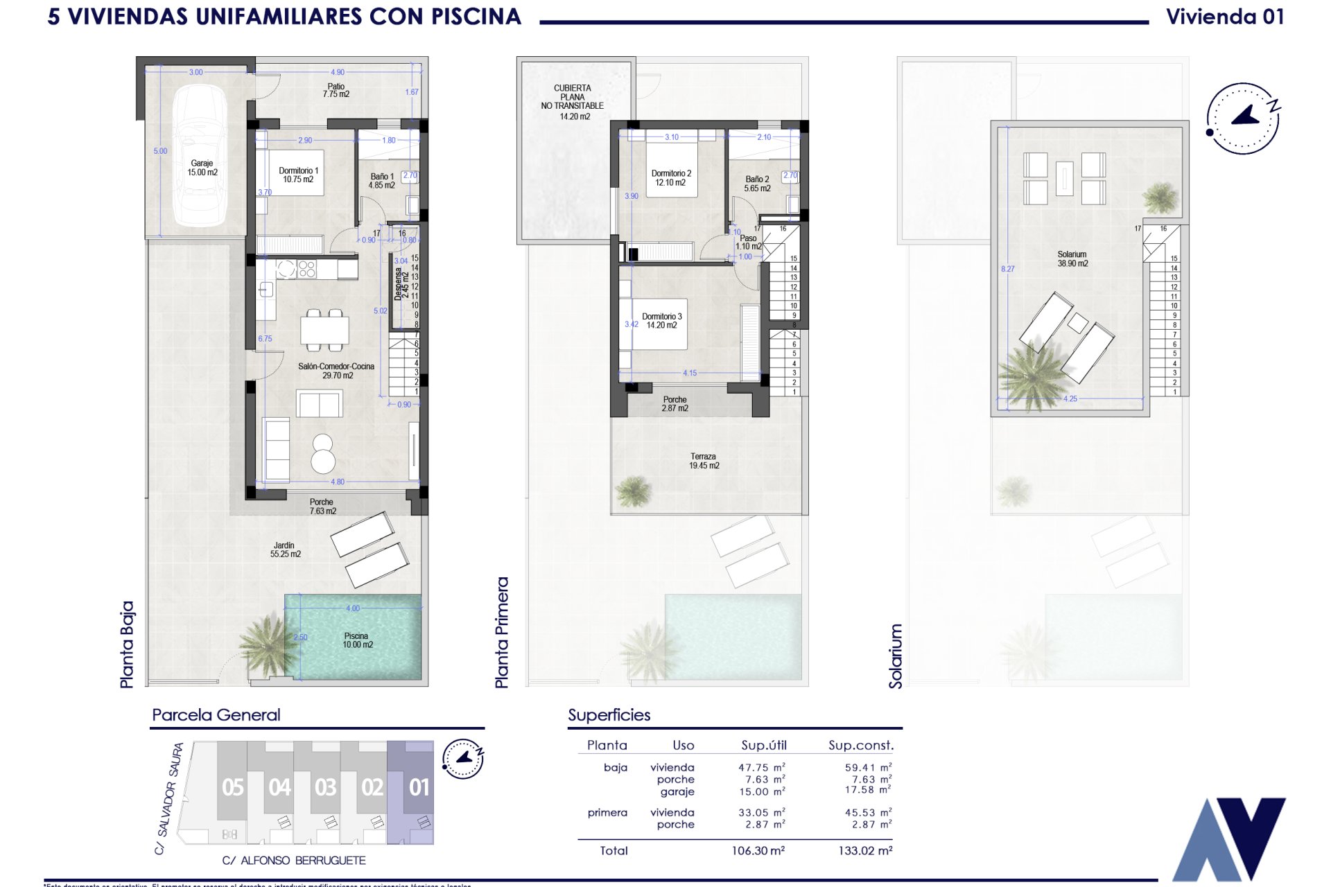 Belägna i den charmiga staden San Pedro del Pinatar erbjuder dessa radhus en unik möjlighet att njuta av livet på Costa Cálida. Med totalt fem tillgängliga fastigheter är varje designad för att ge komfort och funktionalitet. Närheten till havet, endast 3 km bort, låter dig njuta av havsbrisen och de vattenaktiviteter som området erbjuder. Dessutom ligger den närmaste flygplatsen 41 km bort, vilket underlättar tillgången till nationella och internationella förbindelser. Detta privilegierade läge kombinerar lugnet i en bostadsmiljö med närhet till tjänster och fritidsaktiviteter.
